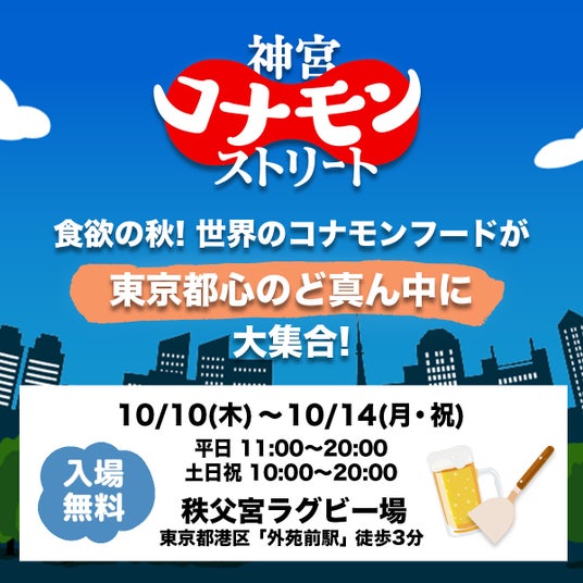 満足度MAX間違いなしのフードフェス「神宮コナモンストリート」、記念すべき第一回がいよいよ開催!!