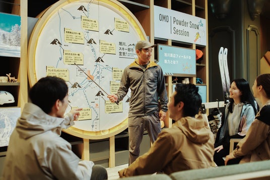 旭川近郊のスキー場滑走や、アフタースキーをもっと楽しめるよう、プロスキーヤーや地元のフィールドガイドなどによる、OMOパウダースノーセッションを毎週土曜日に開催します。OMOレンジャーを交えて、旭川エリアのパウダースノーの魅力や、各スノーフィールドの特徴、アフタースキーの楽しみ方をプロ目線で伝授します。