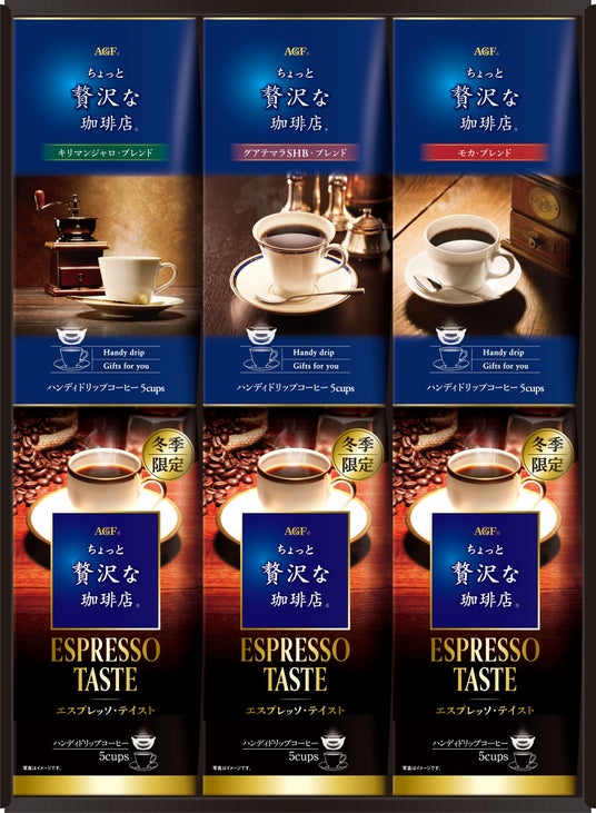 定番のカフェオレ、紅茶オレなどに加え、冬季限定のリッチ ミルクカフェオレ、ヘーゼルナッツオレを詰め合わせた《AGF(R)「ブレンディ(R)」スティック ウィンターカフェオレコレクション》、厳選された良質のコーヒー豆を丁寧に深煎りし、スイーツと相性が良くしっかりとしたコクが感じられる冬季限定のエスプレッソ・テイストをセットした《AGF(R)「ちょっと贅沢な珈琲店(R)」ドリップコーヒー ウィンターギフト》を新発売します。また、産地ごとの様々な味わいがブラックでもミルク入りでも楽しめるセットとして、フォーマル向けの贈答にも適した《AGF(R)「ちょっと贅沢な珈琲店(R)」スティック アソートギフト》や、ブラックとカフェオレタイプのアソートにより嗜好性をカバーし、幅広く贈答に対応できる人気の《AGF(R)スティック カフェオレ&ブラック アソートギフト》、産地別に特長の違う深い香りとコクが愉しめるブラックタイプの《AGF(R)「ちょっと贅沢な珈琲店(R)」スティックブラックギフト》も継続展開します。