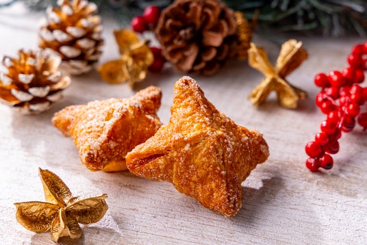 ブリオッシュ生地にオレンジの皮入りクッキー生地を乗せて焼き上げた「オレンジシャンパン トロペジェンヌ」は、パンの中にオレンジピール入りシャンパンフレーバーの生クリームとオレンジマーマレードを詰めました。コロンとしたフォルムとほんのりと香るシャンパンの風味が華やかなフェスティブシーズンにぴったりの一品です。クリスマスツリーのトップスターをイメージした「塩キャラメルのクイニーアマン」は、薄く伸ばしたクロワッサン生地で塩キャラメルを包み、たっぷりのグラニュー糖をなじませて焼き上げる事によりザクザク食感と、とろける塩キャラメルの濃厚な味わいをお楽しみいただけます。