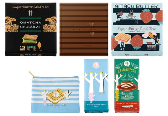 【内 容】シュガーバターサンドの木 7個入、シュガーバターサンドの木 クリームチーズ香るティラミス風 7個入、たっぷりショコラサンド 横綱 10個入、シュガーバターサンドの木 あまおう苺バター 12個入、シュガーバターサンドの木 お抹茶ショコラ 12個入、シュガーバターの木 オリジナルミニポーチ