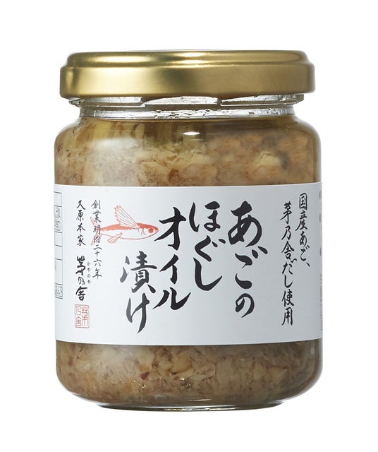 あごのほぐし身を茅乃舎だしと米油でやさしいおいしさに仕上げました。“あごの身のうまみ”を味わうという新しいおいしさをどうぞお楽しみください。
