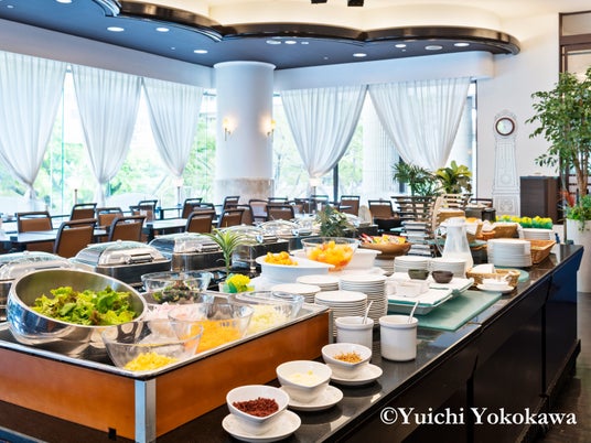 朝食は、陽がさしこむレストランでビュッフェをお楽しみいただけます。