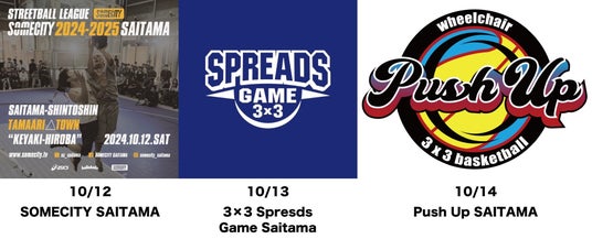 10/12(土)「SOMECITY SAITAMA」、10/13(日)は埼玉で初開催の3x3の公式大会「3x3 Spreads Game」、最終日10/14(月・祝)は、TOKYO 2020銀メダリストから若手のホープまで、国内注目選手がクラフト餃子フェスに大集合する「Push Up SAITAMA」を開催。詳細はSOMECITY SAITAMAの各SNSをチェック!