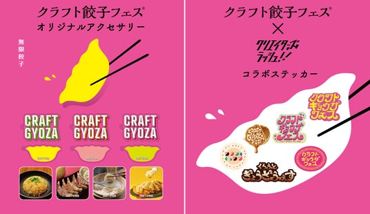 「クラフト餃子フェス」モチーフのオリジナルアクセサリーや、クリエイター集団【クリエイターズラッシュ!!】とのコラボステッカーなどがカプセルトイとなって登場! お気に入りメニューやお気に入りカラーを見つけて、ご来場記念に是非!