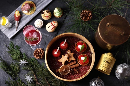 フェスティブシーズン限定の「香り」をテーマにしたアフタヌーンティーが登場いたします。わっぱの蓋を開けた瞬間にひろがる香りの演出からはじまり、柚子や抹茶、山椒などの香り高い日本の食材、そして柑橘やハーブ、スパイスを使用したスイーツやセイボリーがテーブルいっぱいに並びます。フェスティブを表現した見た目にも可愛いスイーツと一緒に、ローズマリーやシナモンなどを使ったバーテンダー特製のモクテルもお楽しみください。さらに、12/21~12/25のクリスマスシーズンには、ホテルメイドのクリスマスケーキもご賞味いただける特別仕様に。庭園の景色とともに、心躍るフェスティブシーズンをお過ごしください。
