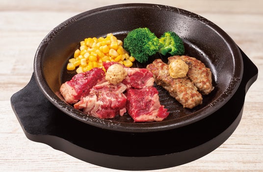 “あつあつ”の鉄皿にのったステーキ、ハンバーグ、ペッパーライス!ジュージューと音を立てながらお肉が焼き上がる“あつあつ”をお楽しみください。