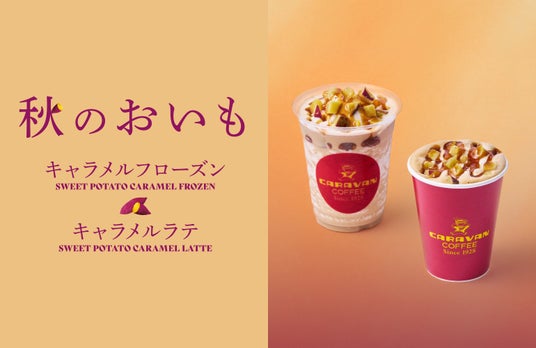 この度、キャラバンコーヒー(運営元:株式会社ユニマットキャラバン/本社:東京都港区/代表取締役社長 落合昭)は、10月3日(木)より、秋のシーズナルドリンク「おいも キャラメルラテ」「おいも キャラメルフローズン」を新発売いたします。エスプレッソのほろ苦い風味がおいもと好相性、お互いを引き立て合う甘くて香ばしい秋のドリンクです。