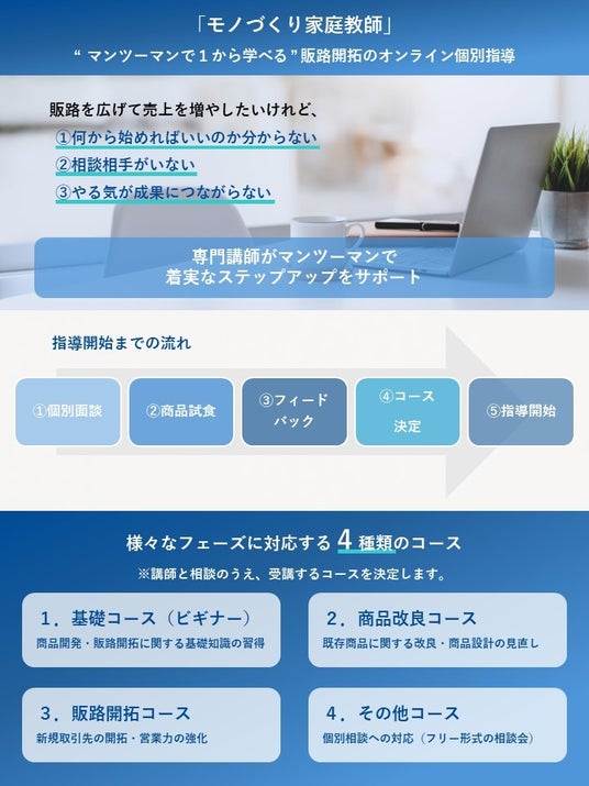 具体的には、1.オンライン個別指導、2.対面の商談会の2つのパートで構成されており、