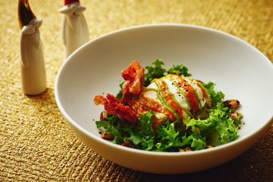 ポーチドエッグとセラーノハム パプリカクリーム ピーカンナッツ フェタチーズ