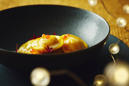 黒トリュフ 4種のチーズとパースニップのラビオリ 山椒シャンパンソース