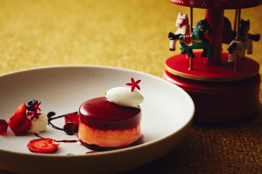 冬に旬を迎えるアンコウをブレゼし、ブランデーのツイストを効かせることでフェスティブシーズンにぴったりなひと皿に仕上げた魚料理、そしてファミリーや友人とシェアすることで幸せをもたらすとされる地中海の伝統的なレシピであるチキンファルシをイメージしたメインディッシュが、より一層クリスマス気分を盛り上げます。