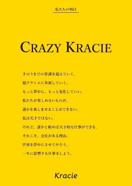 「CRAZY KRACIE」は、クラシエのスローガン「夢中になれる明日」を生活者に届けるために、挑戦することが企業風土として定着することを目指して、2017年に掲げられたクラシエのビジョンです。