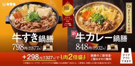 「牛すき鍋膳」「牛カレー鍋膳」https://www.yoshinoya.com/lp/gyusuki_gyucurry/