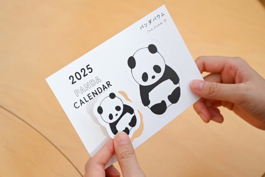 『パンダカレンダー2025』は、すべて紙製の組み立て式。表紙・台紙部分にやさしい手触りが魅力の紙を使用し、表紙を型ぬくことでペーパークリップになる遊び心を加えました。