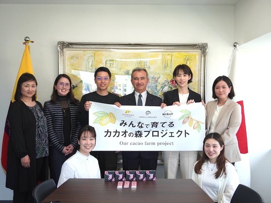 国際フェアトレード認証取得事業者、JICAサステイナブル・カカオ・プラットフォームの会員企業であるVANILLABEANS(バニラビーンズ)は2000年に設立、オンラインショップでの販売からスタートし、現在は横浜みなとみらいを中心に実店舗カフェも展開する横浜発のクラフトチョコレート専門店です。2007年からフェアトレードチョコレートの使用を開始し、ガーナに小中一貫校を建設するなどチョコレートに関わる全ての人が笑顔になれるような仕組みづくりやプロジェクトを行っています。現在は、エクアドル共和国にてカカオの植樹プロジェクトが進行中、2024年4月には駐日エクアドル大使館にも表敬訪問を行いました。