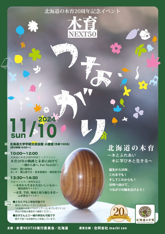 20年の節目としてこれまでの木育の歩みと未来に向けて、北海道の木育活動を道民の皆様に発信する記念イベントを開催します。