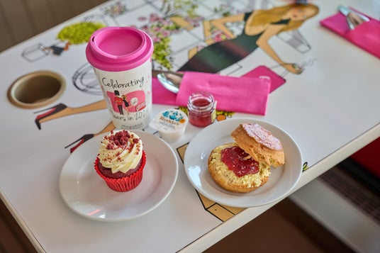 クリームティーセット(スコーン〈プレーン2個、クロテッドクリーム・ストロベリージャム付き〉、レッド ベルベットカップケーキ、紅茶、タンブラー付き、1人前) 5,280円 ◎催場
