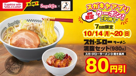 スガ・ジローラーメン、焼き鳥丼が一緒になった特別セットも期間限定で登場。お腹いっぱい楽しみたい方のためのお得なセットです。