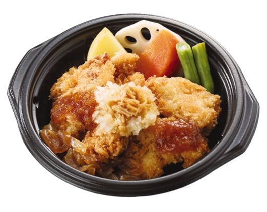 柔らか食感の鶏もも肉を使用したカツを、自社センターのこだわり出汁と醤油の風味が香る甘めのたれに大根おろしを加えて仕上げました。
