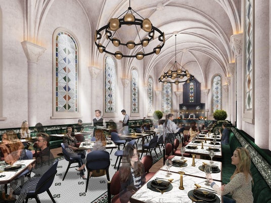 ステンドグラスが美しく煌めく聖堂レストラン。