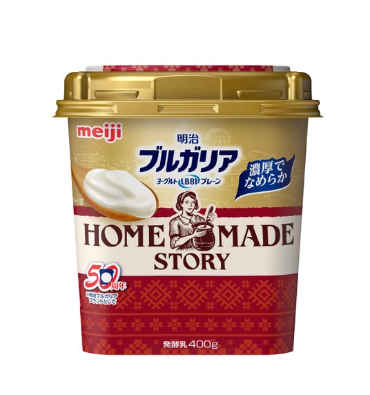 「明治ブルガリアヨーグルト」は、1973年の発売から50年、長い間お客さまに愛され続けているロングセラーブランドです。発売50周年を記念し2024年4月8日から発売している「明治ブルガリアヨーグルトLB81プレーン HOME MADE STORY」は、ヨーグルトの本場ブルガリアに伝統として受け継がれている滑らかで濃厚な自家製ヨーグルトをテーマとしたプレーンヨーグルトです。たっぷりの生乳と乳製品を、本場ブルガリア由来のLB81乳酸菌で丹念に発酵した本商品は、乳のコクとクリーミーな味わいをお楽しみいただけます。「明治ブルガリアヨーグルト」本来のさわやかな酸味と乳脂肪分5.0%のリッチな味わいが特長です。