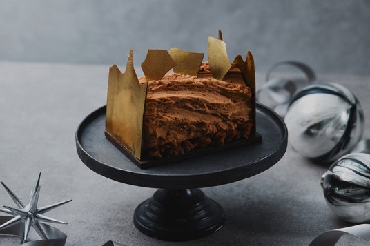 フランスの伝統菓子“ブッシュ・ド・ノエル”を、サウザンドスタイルでご用意いたしました。トップに、ゴールドのチョコレートをあしらい、シックで洗練されたデザインに仕上げたムースケーキです。香り高いほうじ茶を練りこんだショコラムースの中には、甘酸っぱく爽やかなパッションブリュレが隠れ、さらにクリスピーな食感がアクセントに。複雑でありながらもバランスの取れた上品な味わいが広がります。
