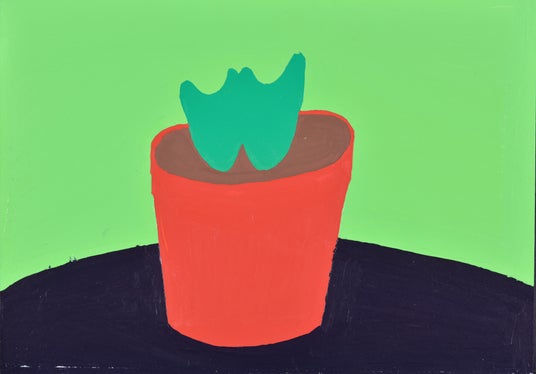 小学生の時、描いたポスターが受賞したのをきっかけに、絵画教室に通いはじめ、現在も週1回のペースで教室での制作に取組む。植物や静物、人物などが主なテーマで、モチーフを目の前にしながら描く。鉛筆で下書きを行い、それから3色以上のアクリル絵の具を迷うことなく選び、丹念に混ぜ合わせ、画用紙に吸い込ませるように丁寧に塗り込んでいく。