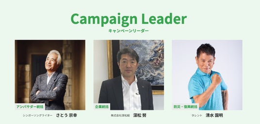 『アンバサダー統括』には『シンガーソングライター さとう宗幸氏』、『企業統括』には『株式会社深松組 代表取締役社長 深松努氏』、『防災・復興統括』には『タレント 清水国明氏』、をお迎えし「宮城県にゆかりのある公式アンバサダー」「宮城県を応援するプロジェクトアンバサダー」そして「一般公募にて選ばれたキャンペーンアンバサダー」とともに、連携して宮城県の魅力を発信してまいりました。