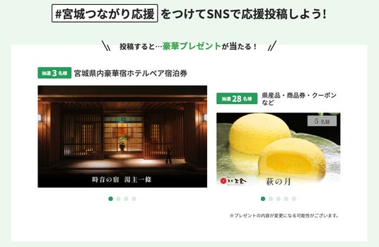 宮城県の魅力を世界へ発信し、宮城県の課題解決に貢献することで、持続可能な地域づくりの”応援”を行う、官民連携の地方創生WEBキャンペーンです。