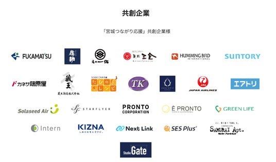宮城県内の企業様(株式会社深松組、伝承千年の宿 佐勘、時音の宿 湯主一條、株式会社菓匠三全、株式会社ハミングバード・インターナショナル、サントリー株式会社 東北営業本部、株式会社カネサ藤原屋、蔵王酒造株式會社、株式会社たびのレシピ、株式会社タケヤ交通、アクアイグニス仙台など)のご支援のもと、連携して活動してまいりました。