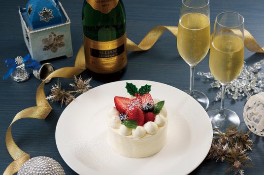 ◇スパークリングワイン(フルボトル)1本とクリスマスケーキ(ホール直径約10cm)をお部屋へお届けします。