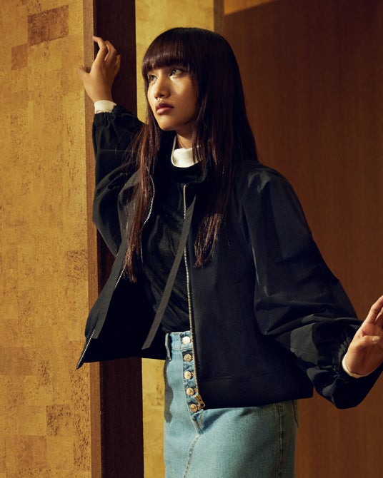 ブルゾン ¥49,500(税込)・カットソー ¥18,700(税込)・スカート ¥36,300(税込)