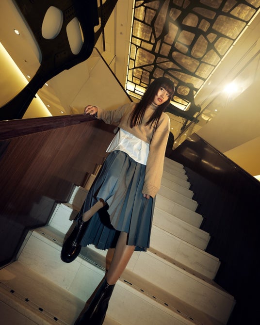ニット ¥22,000(税込)・シャツ ¥30,800(税込)・スカート ¥38,500(税込)