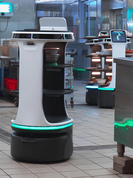 同時に複数のロボットが互いを検知し共同作業できるため、混雑時でも迅速に配膳・下膳が可能です。