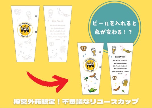 神宮外苑で開催するオクトーバーフェストでは色が変わる!?不思議な体験ができるリユースカップが登場します。