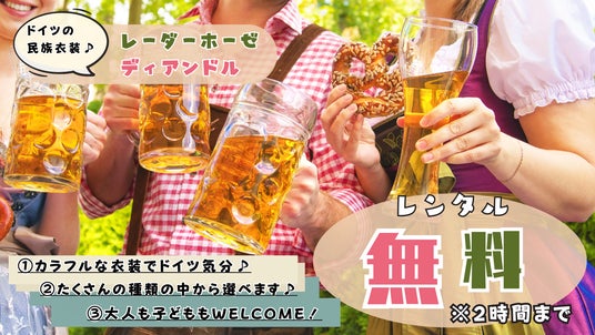 また、会場ではオクトーバーフェストらしく、ディアンドルやレダーホーゼを無料で貸し出しをしておりますので仮装して楽しめます。