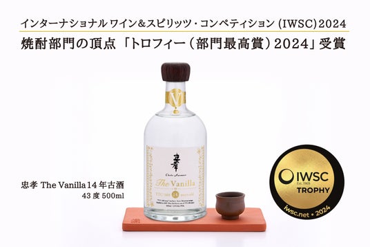 忠孝酒造株式会社が製造販売する「The Vanilla14年古酒43度」が、世界三大酒類品評会の一つ、「インターナショナル・ワイン&スピリッツ・コンペティション(以下、IWSC)2024 」において、100銘柄以上がエントリーされた焼酎部門の頂点である「トロフィー(最高部門賞)」を授賞。