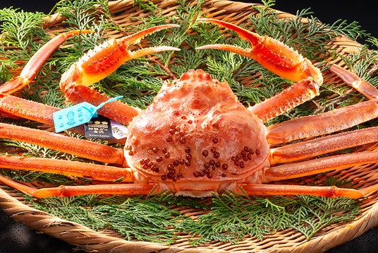 ※「加能ガニ(かのうがに)」…石川県の漁港で水揚げされた規定のサイズ以上の雄ズワイ蟹。青いタグが目印。
