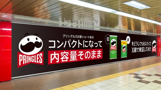 世界140か国以上で販売されているポテトチップスの代表ブランド「プリングルズ」は、ショート缶について2024年9月2日(月)出荷開始商品より順次、内容量はそのままに、パッケージのサイズを15mm短くコンパクトにする商品改定を実施しています。本改定に伴い、「コンパクトになって内容量そのまま」をより多くの人に知っていただきたいという想いから、新ショート缶の内容量をX線で検証する「PRINGLESCAN(プリングルズスキャン)プロジェクト」を2024年10月7日(月)より開始します。本プロジェクトの開始に伴い、10月7日(月)~13日(日)までの1週間、新ショート缶をX線で透過し、プリングルズの中身のポテトチップスが丸見えになった「ポテチのレントゲン広告」を東京メトロ新宿駅構内に掲出します。
