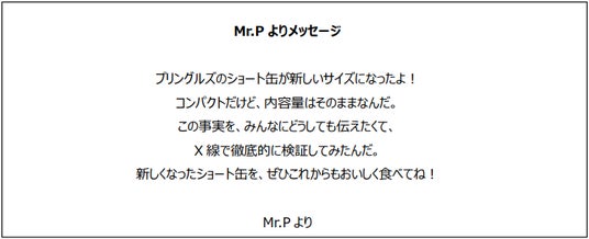 プリングルズは人々のあそび心や好奇心をくすぐることを使命とし、日常の中に溢れる楽しい瞬間とその好奇心をくすぐる価値を提供するブランドです。昨今、物価などの高騰に伴い、スナック菓子の商品改定が余儀なくされる中で、プリングルズのショート缶も9月2日(月)より商品改定を行いました。すると、実際は「内容量はそのまま」であるものの、SNS上では「内容量も少なくなったのでは?」というお声をいただきました。そのような誤解を解くために、X 線を使った「前代未聞の”透け透けプリングルズ“」というプリングルズらしいユニークな方法で、「内容量そのまま」を世の中にお伝えすることにいたしました。