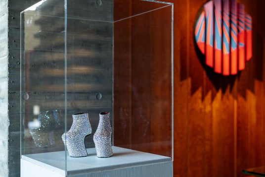 《Heel-less Shoes》は、江戸時代の花魁が履く高下駄から着想を得て制作された舘鼻則孝の代表作です。2010年に東京藝術大学の卒業制作展で初めて公開された本作は、米国歌手レディー・ガガに愛用されたことでも世界的に知られています。舘鼻は、レディー・ガガの専属シューメイカーとして、約2年間で25足以上の作品を提供しました。