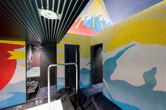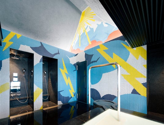 「リバーリトリート雅樂倶」は、ホテルグランミラージュや樂翠亭美術館を営む株式会社アイザックの関連施設となります。舘鼻は、同社が運営するホテルグランミラージュの9階に位置する「スパ・バルナージュ」の浴室アートワークも手掛けています。