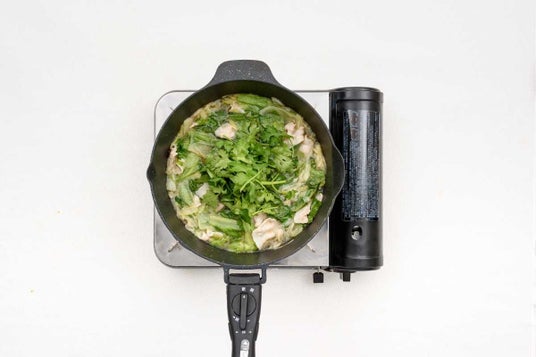 ごま油香る鶏ガラスープにたっぷりのパクチーをトッピングした、エスニックを感じる鍋です。パクチー好きな方にぜひ食べていただきたい一品です。