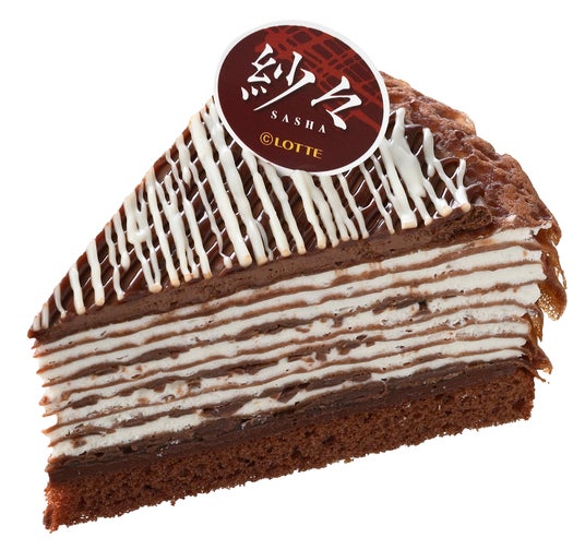 特長:銀座コージーコーナーの「ミルクレープ」とロッテのチョコレート「紗々」のコラボレーション。1層増えて、ボリュームUPし再登場!ココアクレープと生クリーム入りホイップクリームを重ねて、パリパリチョコを4層にサンド。上面は2種のソースで線状のチョコが幾重にも重なる「紗々」をイメージして仕上げました。「紗々」の繊細な見た目や、ほどける口どけ、チョコレートのパリパリ食感をお楽しみください。