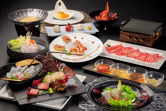 天然クエの他、伊勢海老や熊野牛など和歌山の美味しいを詰め込んだコースです。今年はクエ薄造りを増量をいたしました。また、熊野牛は焼きシャブにて卵黄漬け・塩ポン酢・藻塩など5種類のタレでお楽しみください。