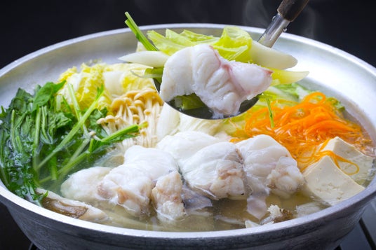最高級の白身はしっかりしていて、鍋にはうってつけです 肉のような食感で、脂がたっぷりあるのにしつこくなく、皮はコラーゲンたっぷり 〆の雑炊は絶品です