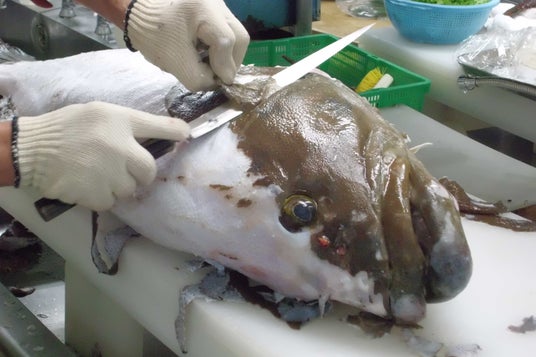 クエは魚体が大きいので、上手く剥ぎ取るのはスキルが必要です