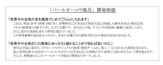 真珠由来成分を配合した「パールオーロラ風呂」は、岩風呂と丸い形の2種類の浴槽があり、真珠とアコヤ貝から抽出した希少な真珠の恵み(パールコンキオリン・ピュアパールミネラル・パールコラーゲン)により、真珠のように輝く肌へ導きます。