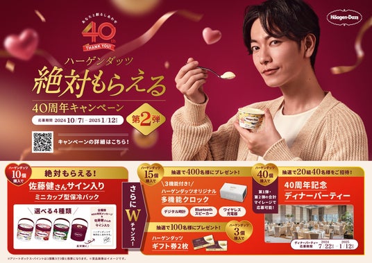 また、第1弾から第2弾までのキャンペーン期間(2024年7月22日(月)から2025年1月12日(日)まで)を通して、ダブルチャンスとして、「40周年記念ディナーパーティー(フォーシーズンズ東京大手町で開催)」が抽選で当たる特別景品もご用意しています。